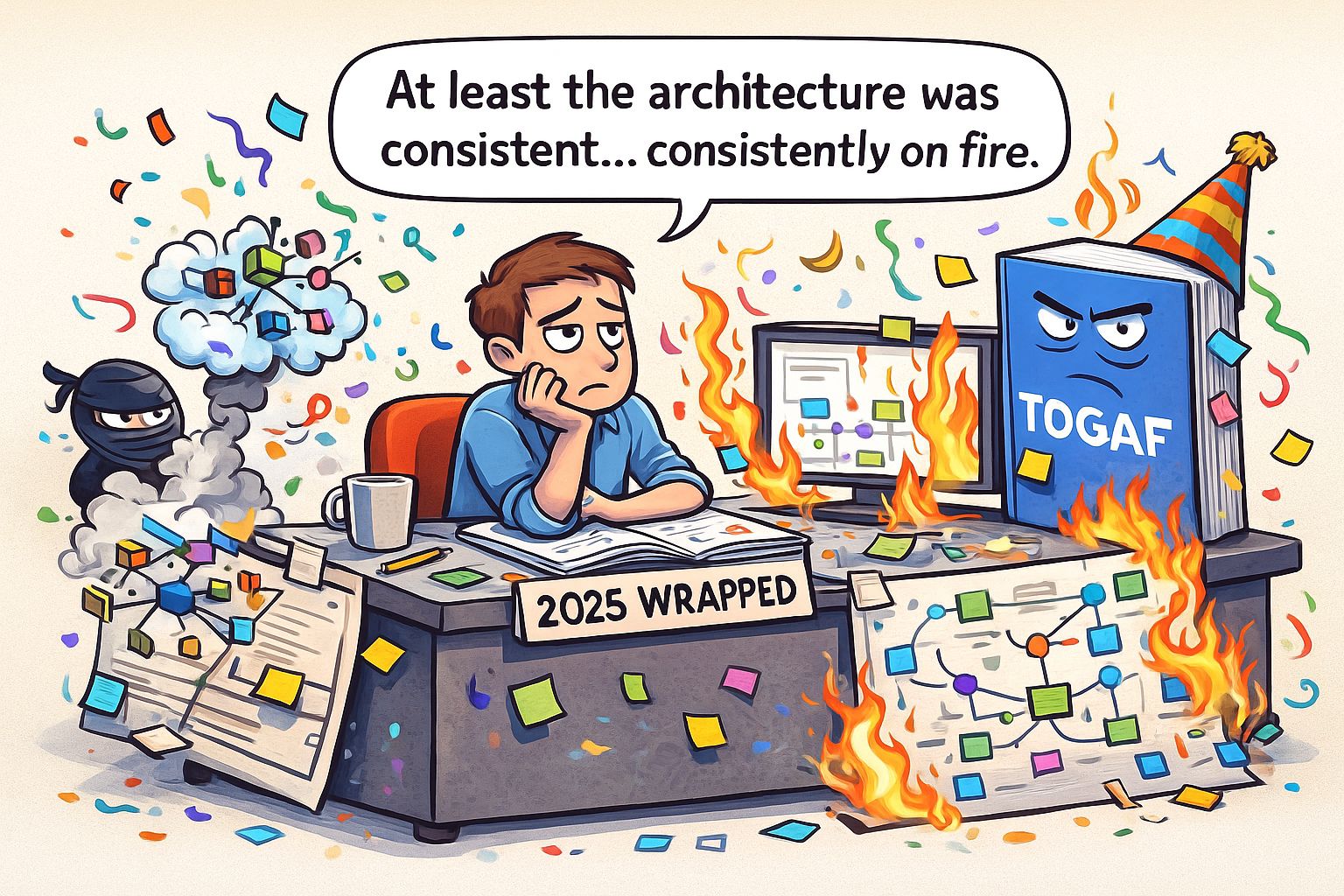 Welcome to our grand finale of the year — the official EA Struggles Wrapped, where we celebrate twelve glorious months of governance mishaps, integration meltdowns, and architectural heroism (the kind your organization never notices, but definitely depends on).